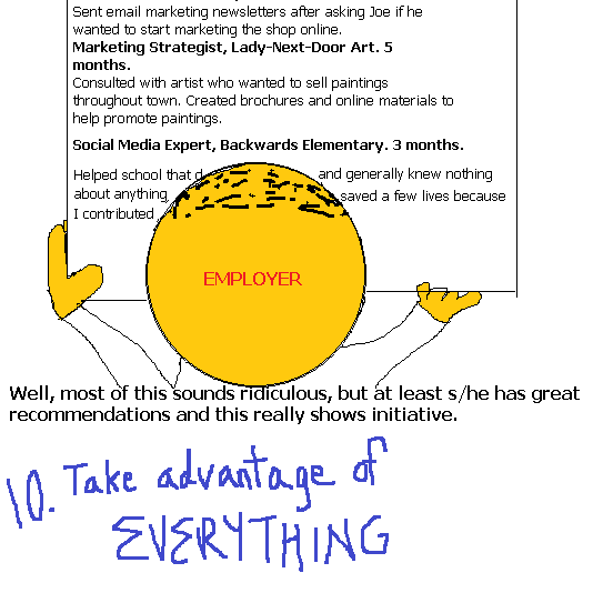 Prove that you can think critically about how you could possibly help the business or person or organization you work for – even if they don’t appreciate the effort, you’ll get the experience you need to go somewhere that will.