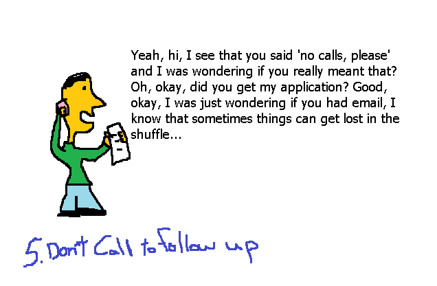 Don’t bother. A follow-up email can sometimes get a terse little response, but otherwise… I’ve never been impressed by the results of a follow-up call, not in this day and age. You’re better off using the time to send your resume to a whole other place.