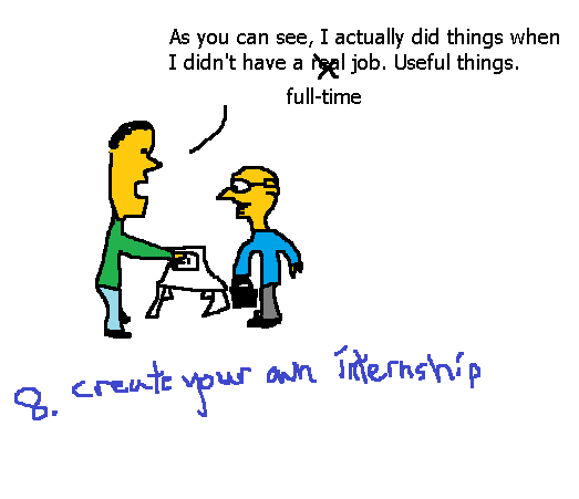 So don’t let Google represent you through a tattered mural of Tweets and Facebook photos you forgot to set to private. Start a blog about something. It’s easy. Sure, barely anyone may read it, but it will be there, waiting, when an employer comes looking. It’s a great way to showcase your critical thinking and writing skills, too.