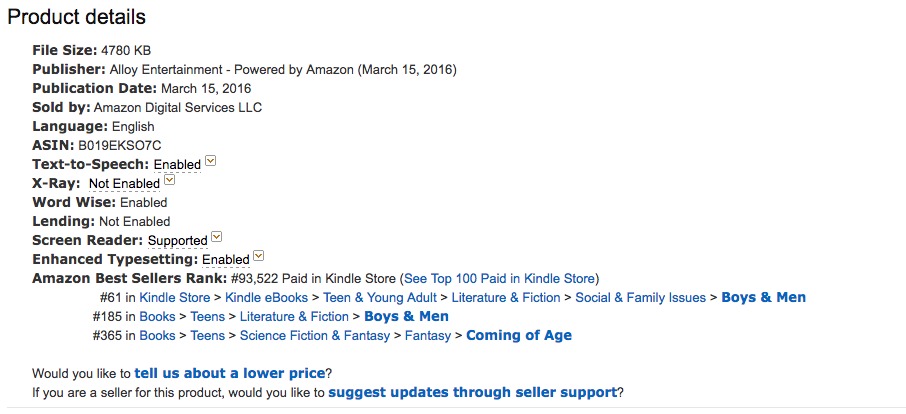Blest typically would be even lower (~250,000), except the Powered by Amazon team also featured the book for a week as a half-price deal, lowering the price point from $3.99 to $1.50.